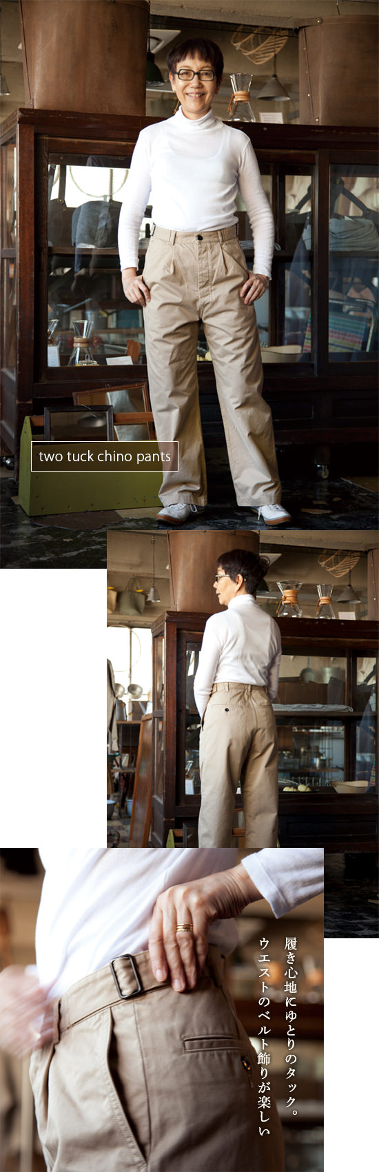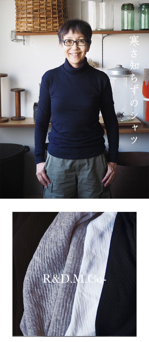 まだ寒いこの季節は中にタートルを着てもすてきです。 |
