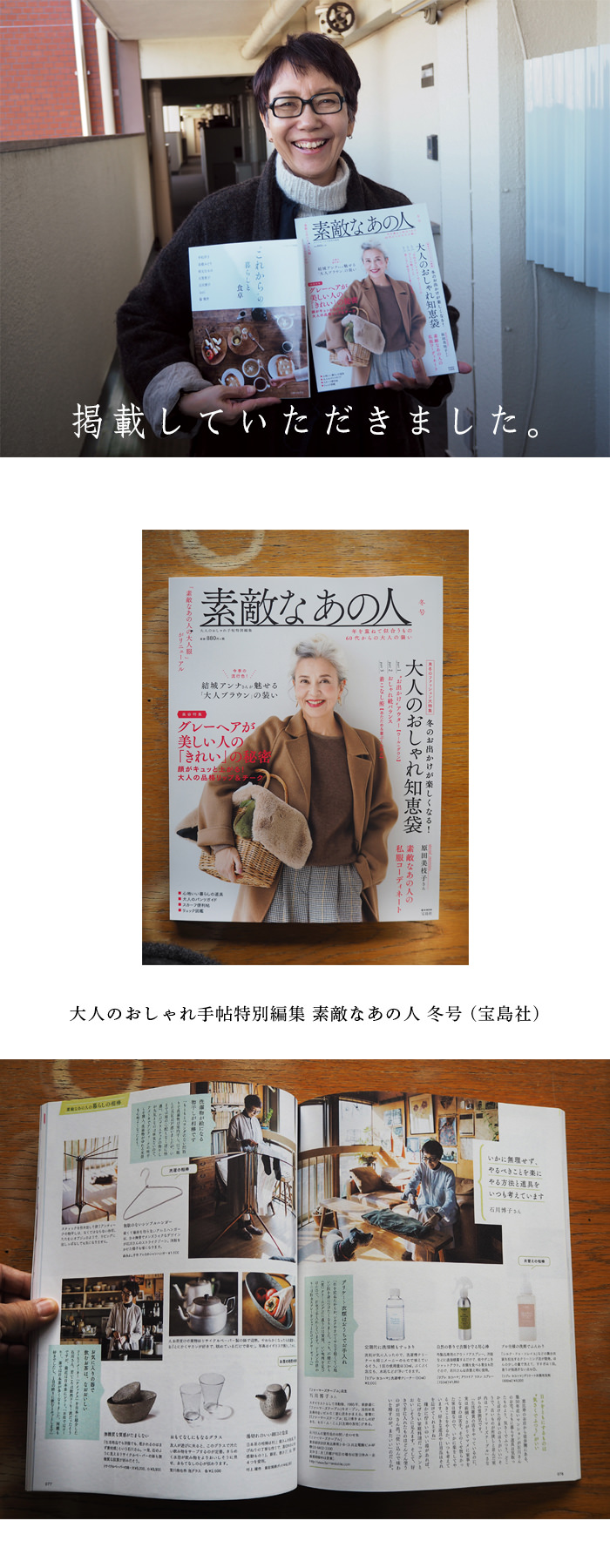 両手が自由になるバックは、本当に使いやすくて便利。長谷さんご自身もお気に入りで使われているそうですよ。