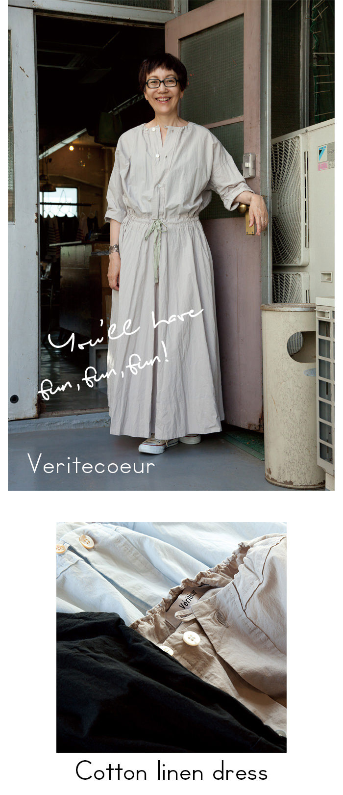 kittaはキッタユウコさんが主宰するブランドで、沖縄北部に工房があります。「人が自然と溶け合う風景を生むための衣」を作っていると言います。以前から大好きなkittaの服、私の大事なワードローブのひとつになっています。シルクやオーガニックコットンの心地よい素材、草木染めならではのなんとも言えない色調、たまりません。kittaのことをご存じの方ならカラフルなグラデーションの色揃えを思い浮かべることでしょう。でも今回は渋い微妙な色の展開で、揃えていただきました。