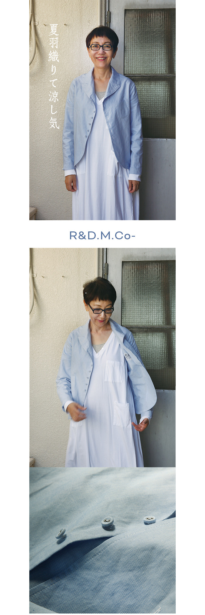 素直な裾のドレープが軽やかです。暑い陽射しの季節にも羽織りたい風通しのいいデザインです。