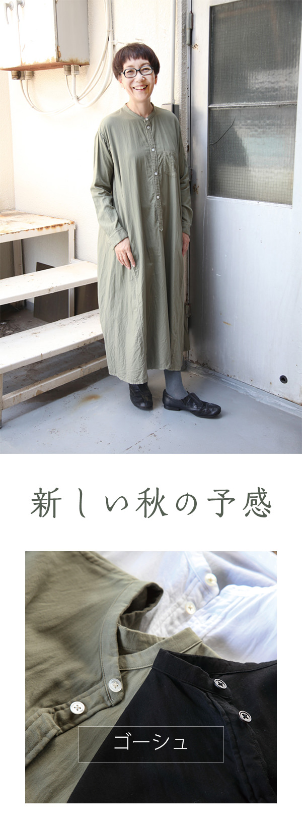 ギャザーを寄せて表情を出しても、そのままストンとラフにしても、紐を軽く結んでも。お好みの着こなしを楽しめます。
