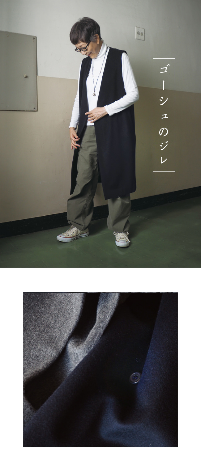 前ボタンを外し、ガウンのように羽織ったり着こなし楽しめる一着です。