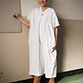 しっかりとしたコット素材なのに、着てみると意外にもとてもしなやかで流れるようなシルエットのワンピースです。コットン好きの私には、たまりません。