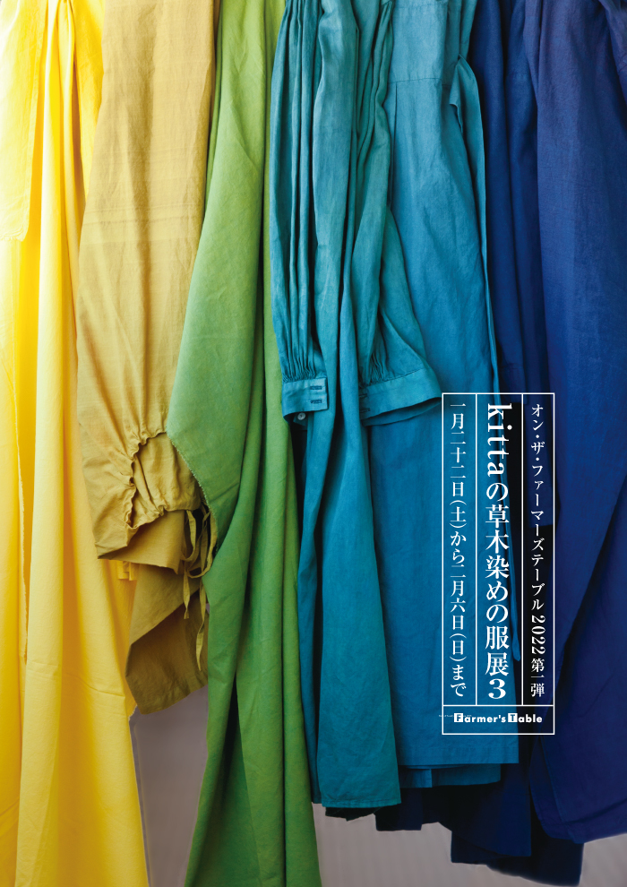 3回目となる今回も沢山作ってくださいました。虹のような鮮やかな色揃えでおなじみですが、ファーマーズテーブルには私たちが暮らす街並みに馴染む少し彩度を抑えた色調の虹で揃えています。kittaの服が心地よく映えます。どうぞお楽しみに。
