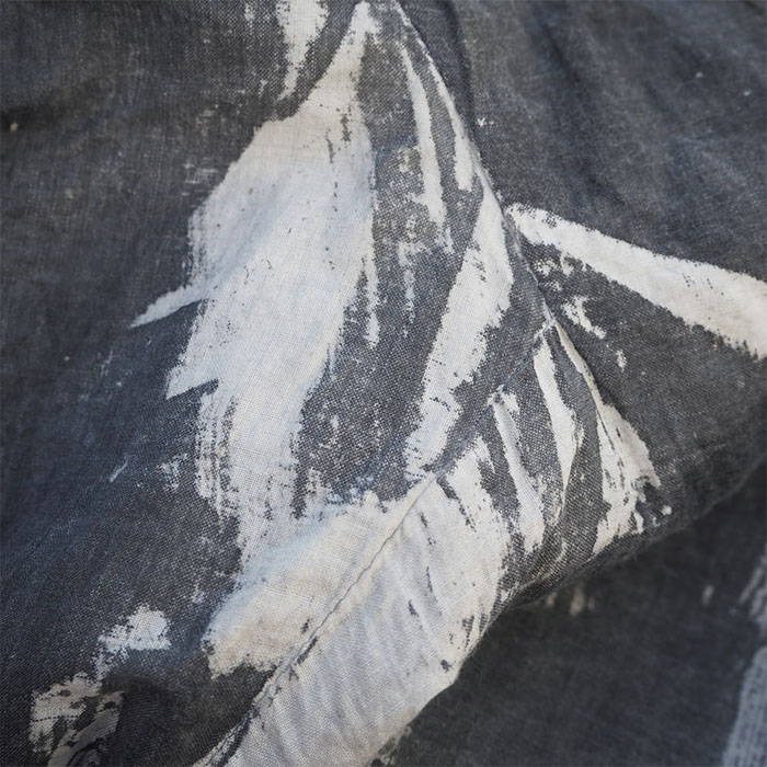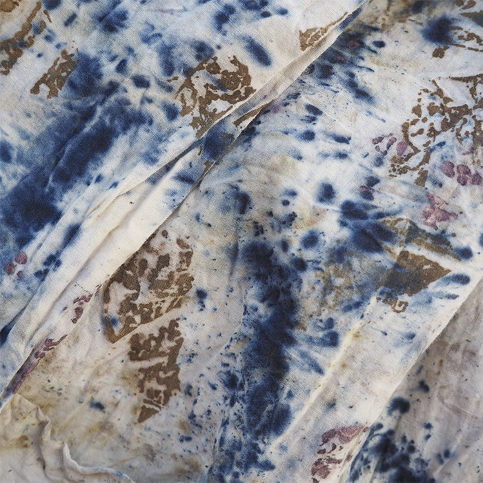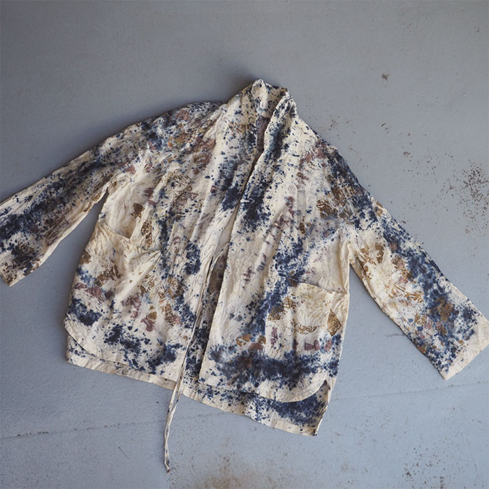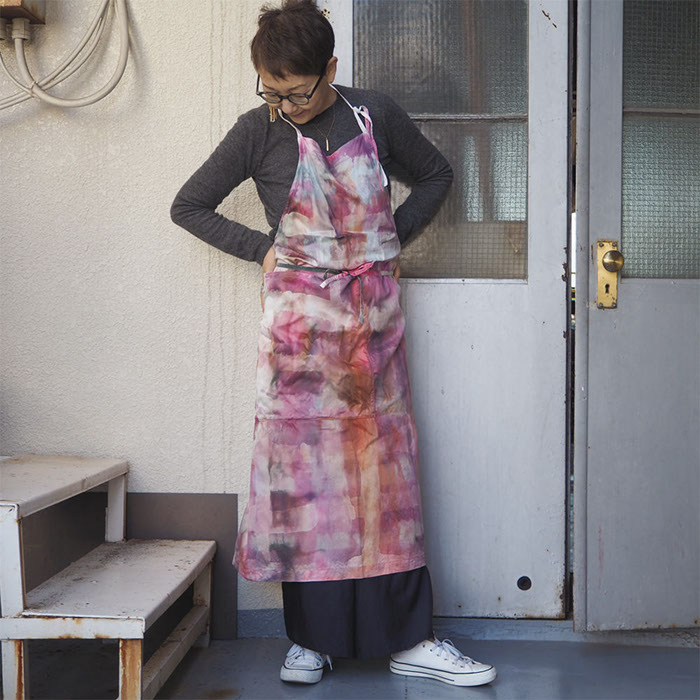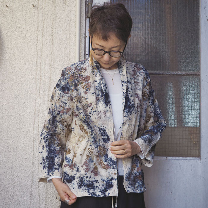 初夏を迎えるこの季節に二回目の大木もと子さんのフナタビアトリエ展を開きます。絵画のように描いていく制作工程はまるで染めというよりもアート作品そのもの、世界に唯一の魅力に溢れています。墨一色、色の重なったもの、バラや紅花などの花を布に巻き込んで染めた植物染めなど計算を超えた軌跡の図像はダイナミックであり繊細でもあります。