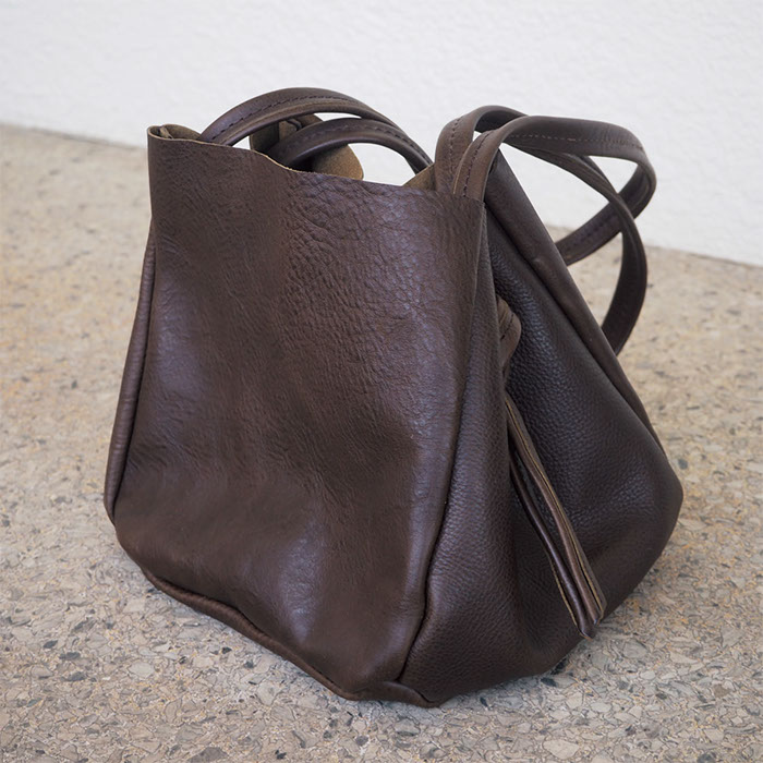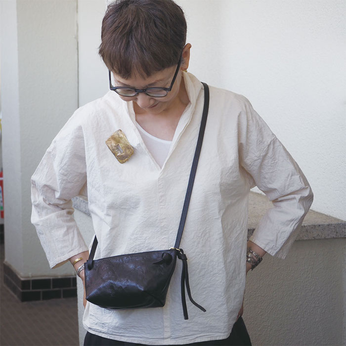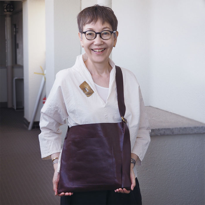 2年ぶりの企画展の打ち合わせに明子さんのアトリエを尋ねると、ファーマーズテーブルをイメージした革素材を沢山用意されていました。『私の好きなバッグ』を十分に理解してアンテナを張り、素材を集めてくれていることにとても感激です。彼女は本当に革素材ごとの持ち味を熟知しているので、出会った素材にふさわしいバッグを作っていきます。そのどれもセンスと使い心地の良さに心をつかまれます。