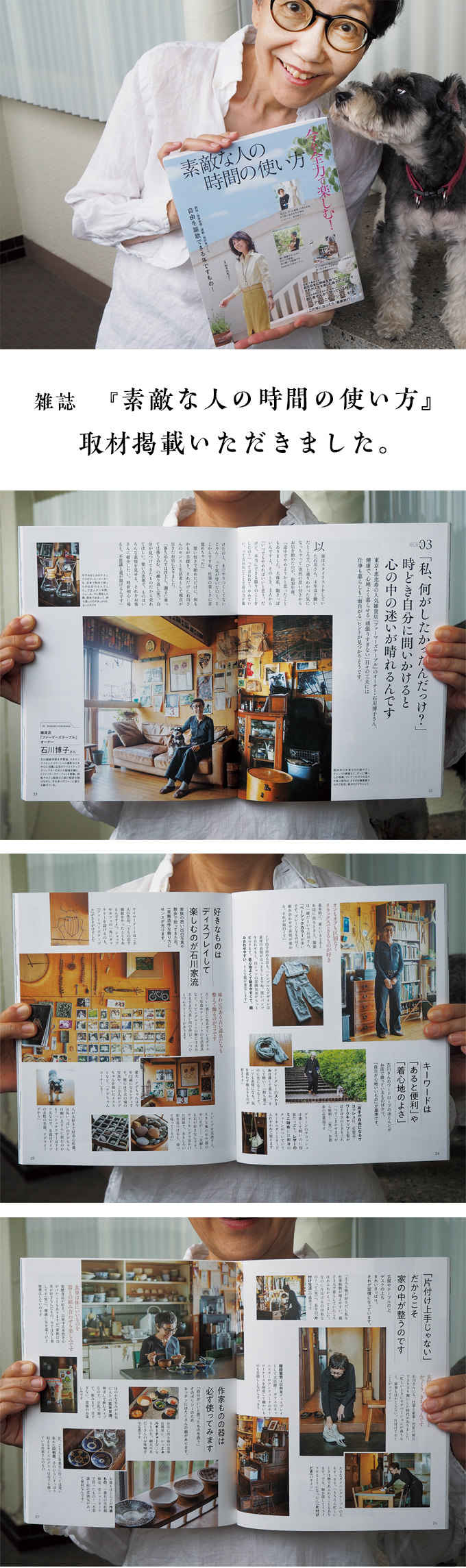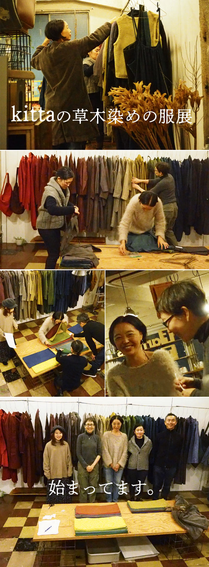 kittaはキッタユウコさんが主宰するブランドで、沖縄北部に工房があります。「人が自然と溶け合う風景を生むための衣」を作っていると言います。以前から大好きなkittaの服、私の大事なワードローブのひとつになっています。シルクやオーガニックコットンの心地よい素材、草木染めならではのなんとも言えない色調、たまりません。kittaのことをご存じの方ならカラフルなグラデーションの色揃えを思い浮かべることでしょう。でも今回は渋い微妙な色の展開で、揃えていただきました。