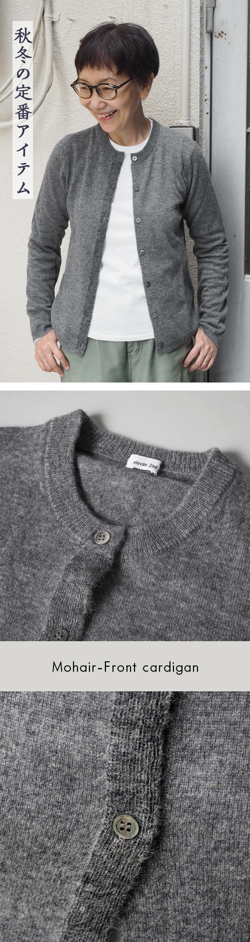 クロスに留め合わせて着たり、ゆるやかに遊ばせ羽織ったり、着方によるシルエットの違いも素敵なデザインです。