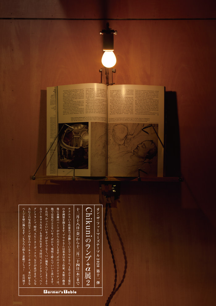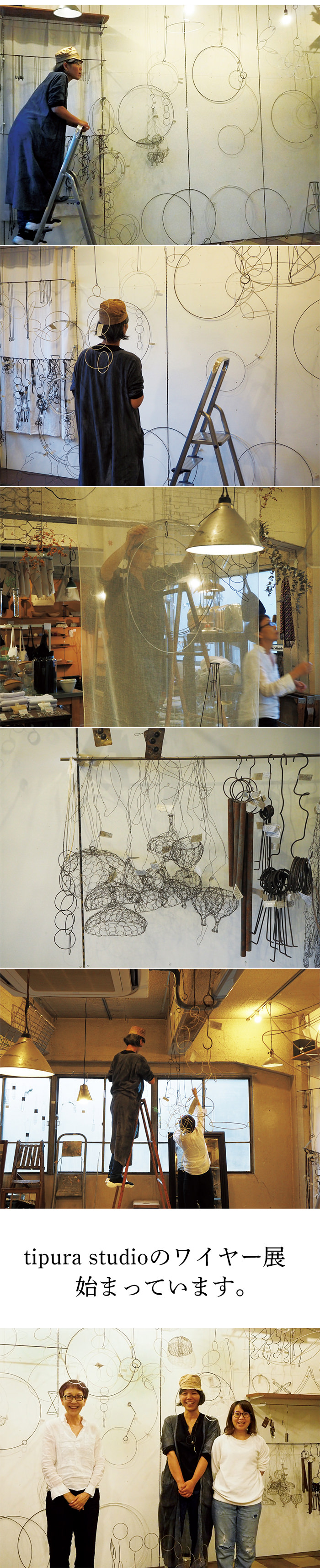 私は針金のモノが大好きです。チプラスタヂオのささたにちなつさんの作品を初めて見た時、「わぁ、イイなぁ!」と思いました。その後縁を得てお目にかかりさっそく(ちょっと不思議な)フックなどがお店の人気アイテムになりました。彼女の作るモノはみんなちょっと不思議、機能がないようで、あって、それも「使う側の勝手・工夫で何なりと。」って感じ。本当に面白いんです。オブジェとして飾って良し、瓶などをかませて花器として使って良し…… みんなアートしています。