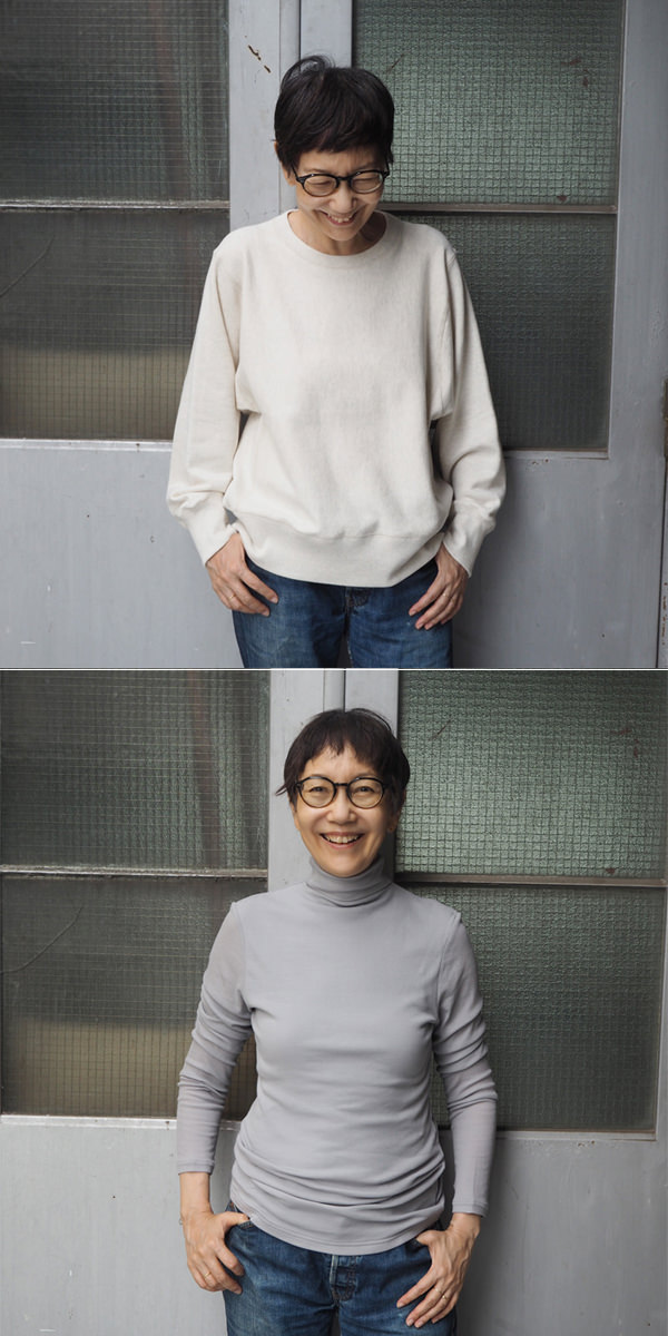 スタイリング表情を色々楽しめるデザイン。着心地もゆったり楽です。