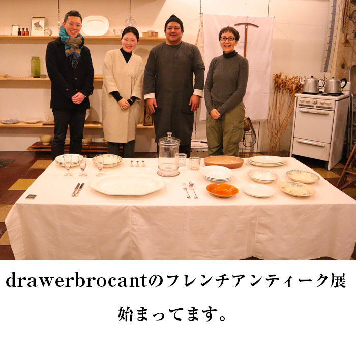 ドゥロワーブロカントの根間さんは、ヨーロッパ、特にフランスを中心に古いステキなモノを集めています。ブロカントとは「美しいガラクタ」という言葉が語源。 物を愛し、長く大事に使用することが暮らしの中に根付いている欧州文化の、「大切にされてきた美しい古道具」を意味するのだそうです。(ちなみにドロワーは引き出しのこと) 最近はよく英国にアンティーク探しに行っていた私ですが、海峡を越えた隣国なのにフランスのモノはちょっと違います。どこかエレガントなんです。